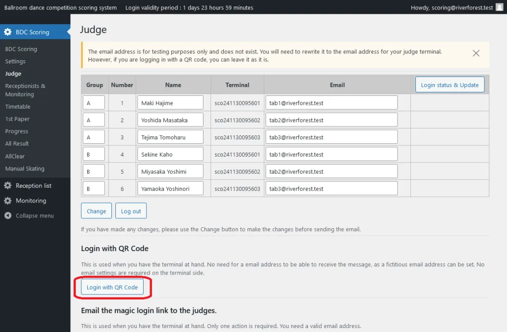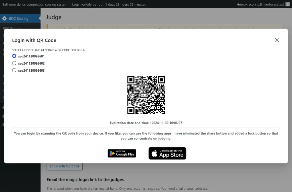 1. Login with QR Code : Use if you have a terminal at hand. You can use a fictitious email address for the judge data. Log in by displaying and reading the QR code with the QR code reading application on your terminal. If you wish to log in using a method other than this, please refer to section 2 or later. While general QR code reading apps can be used, the following apps have been prepared for this system. We have eliminated the share button and added a lock button so that you can concentrate on screening.