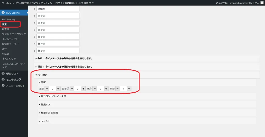 - 2及び3のヒートペーパーをより効率的に使うには、「設定」->「PDF 設定」->「枚数」を司会のみ1枚とし、他は0枚にすると良いでしょう。