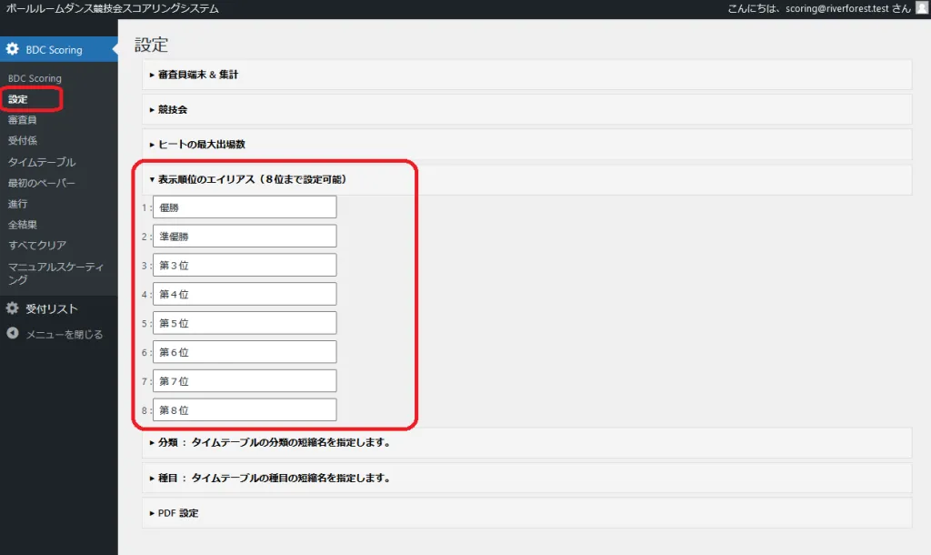 1.「設定 -> 表示順位のエイリアス」で表彰用の別名を設定する