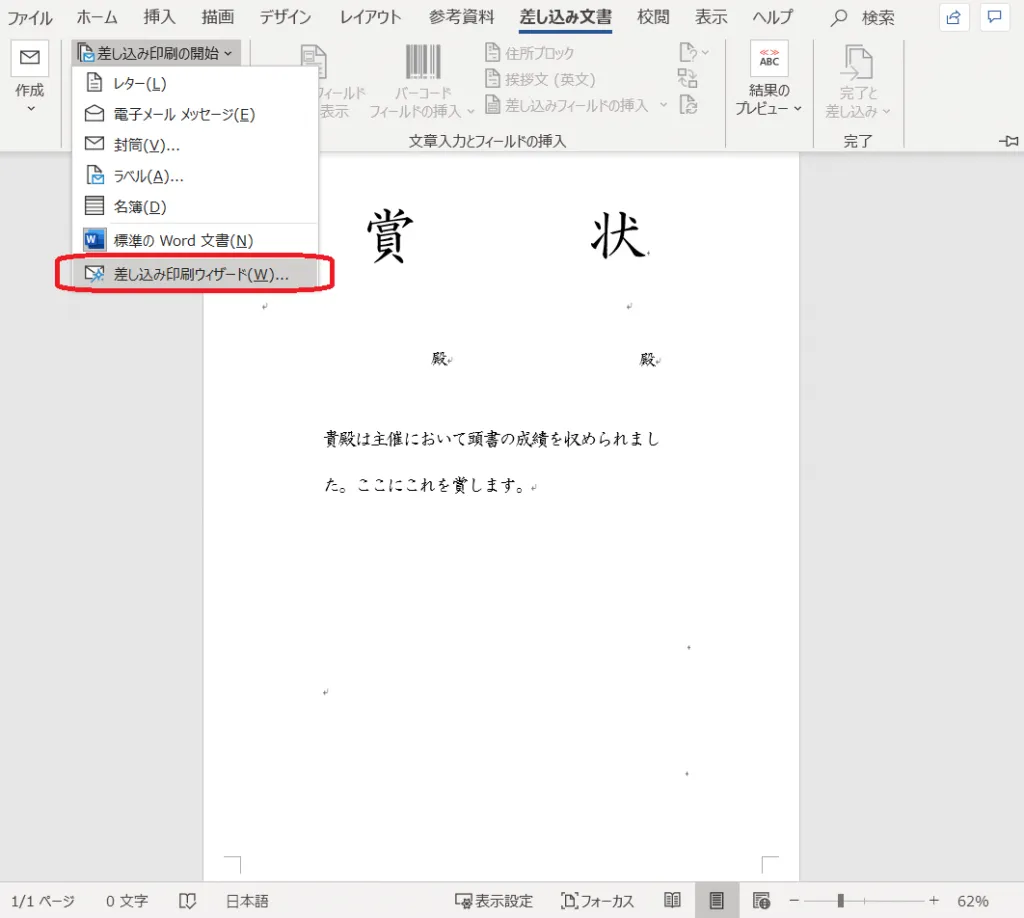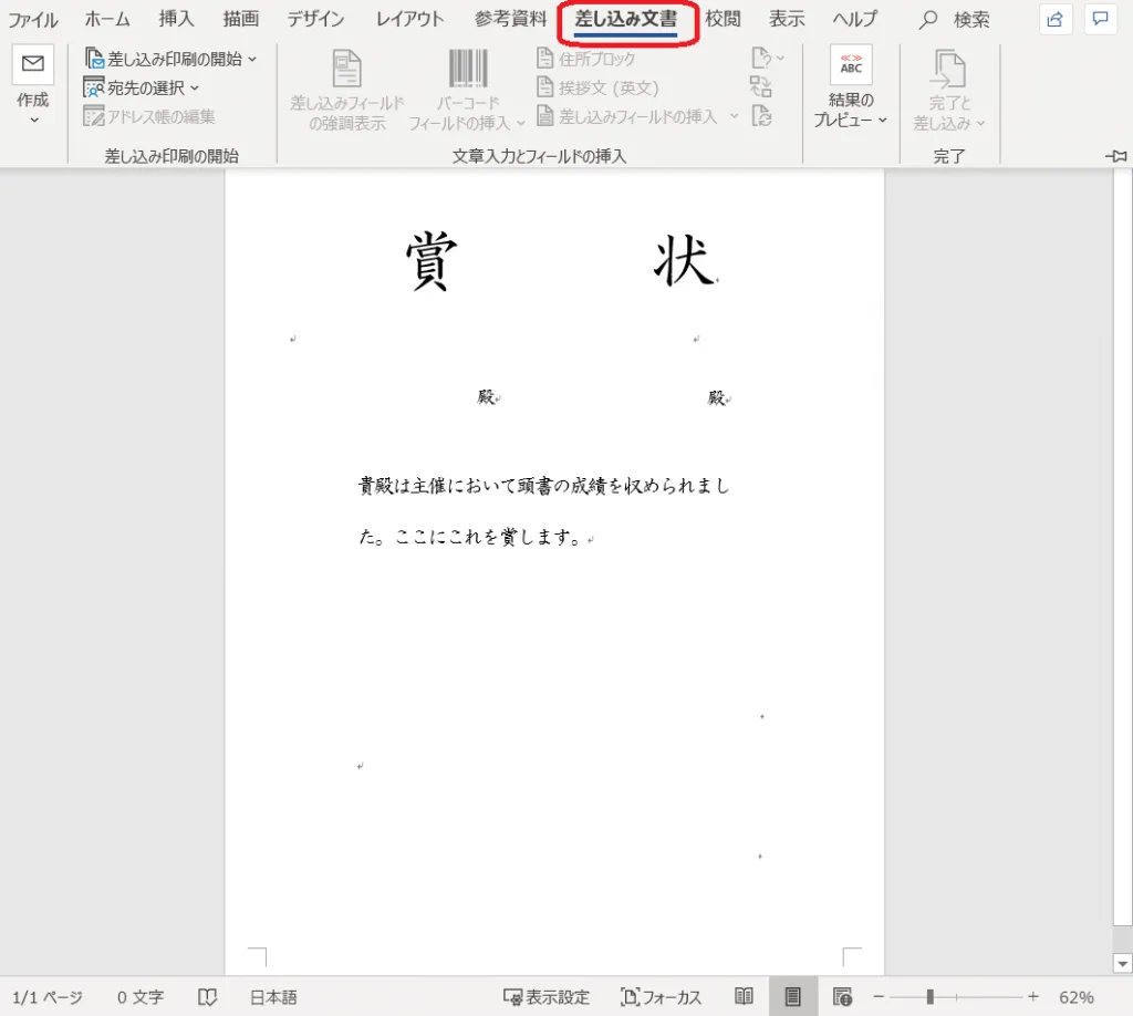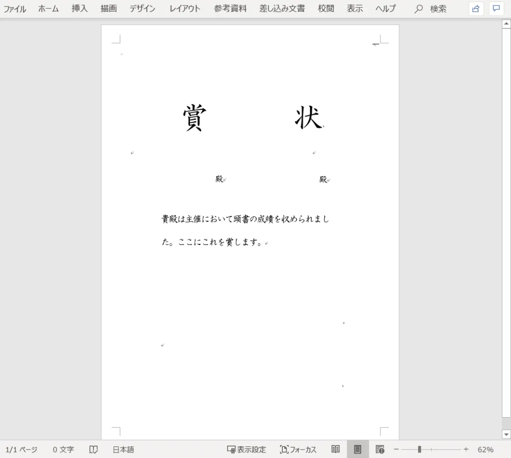 3.Microsoft Word で賞状の書式を作成する