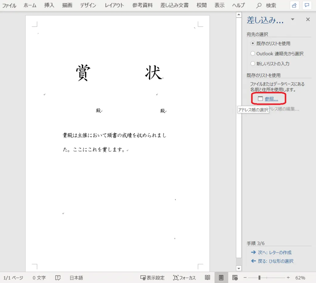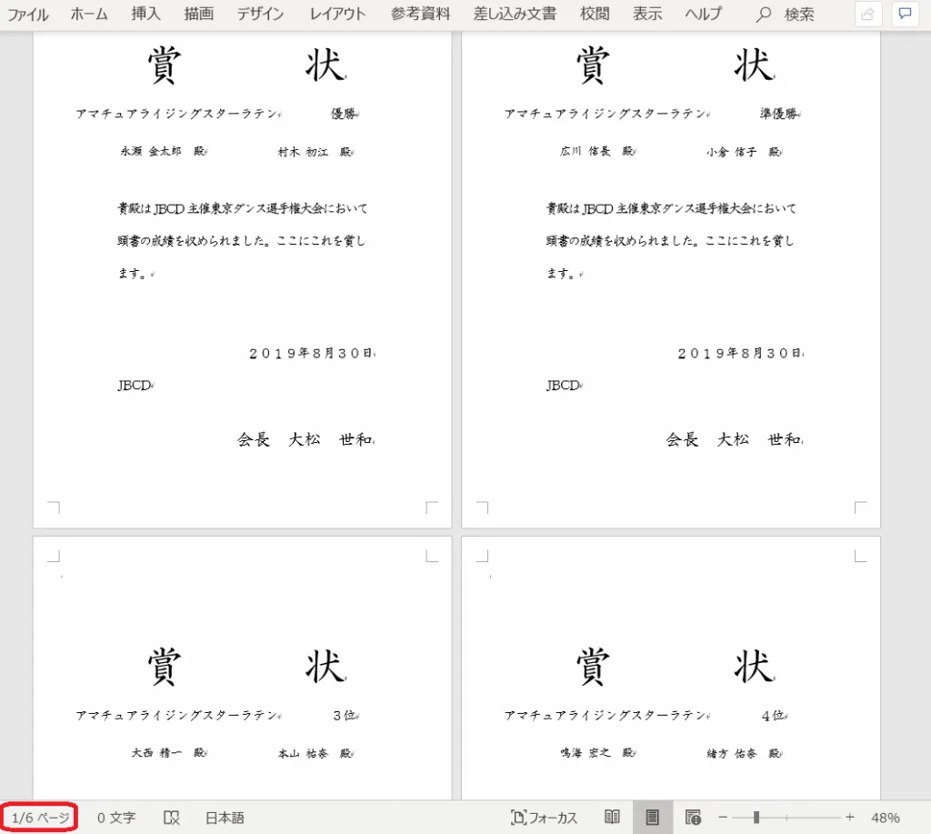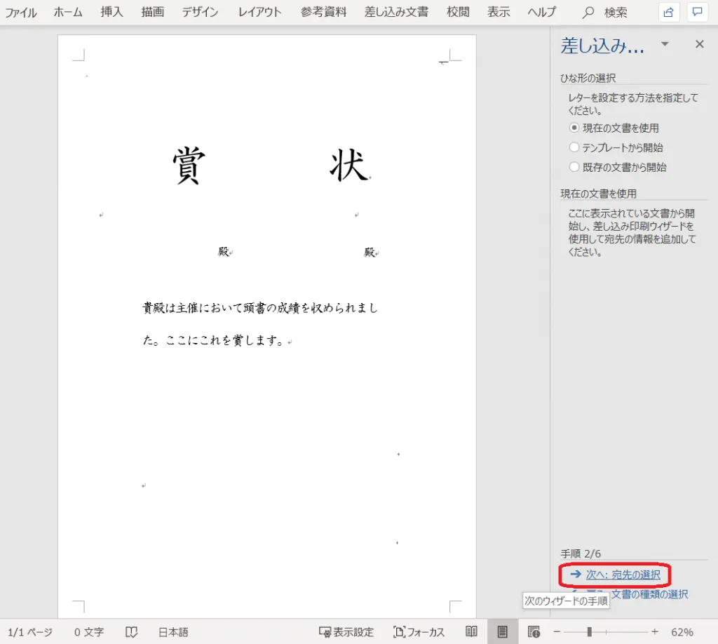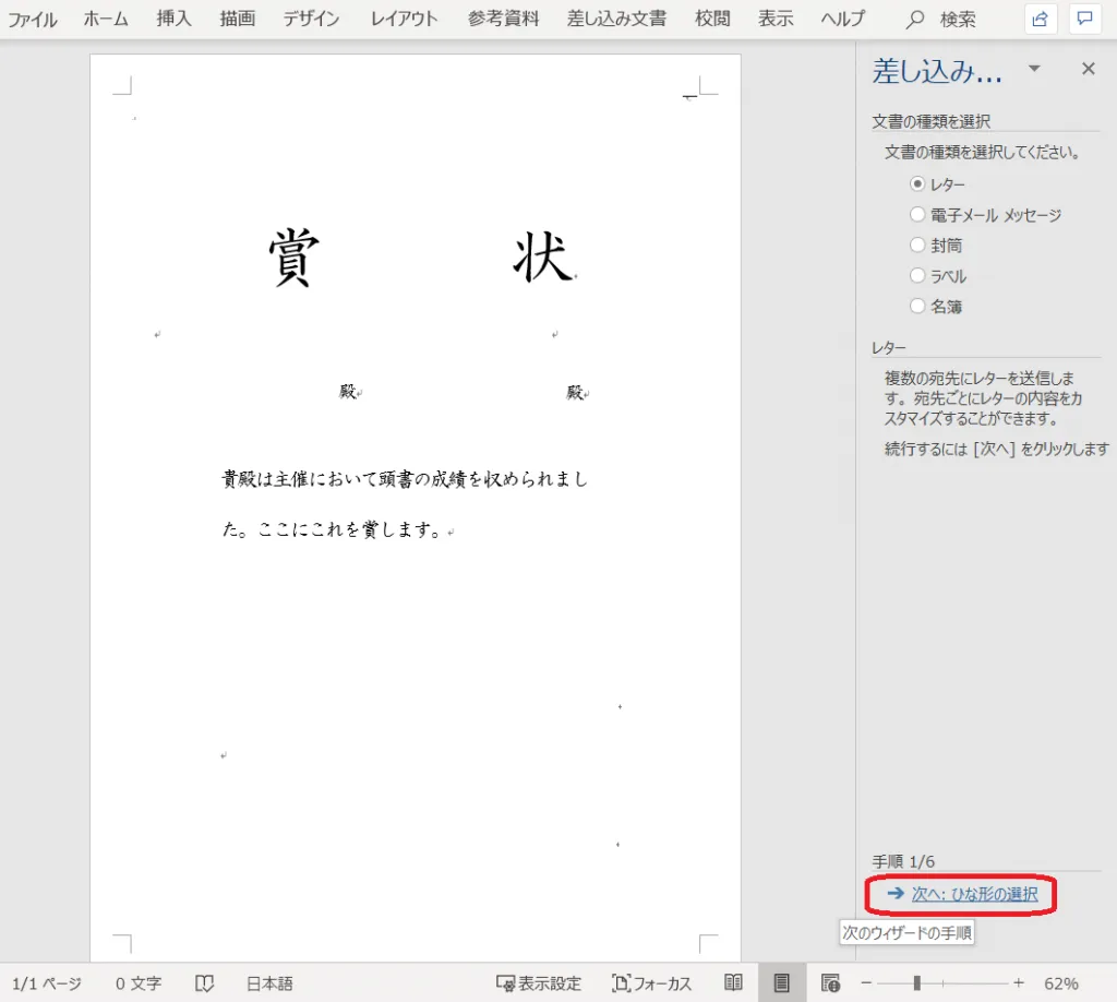 3.Microsoft Word で賞状の書式を作成する