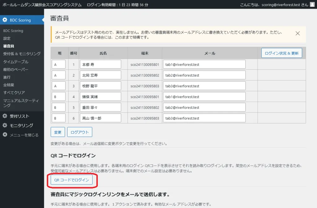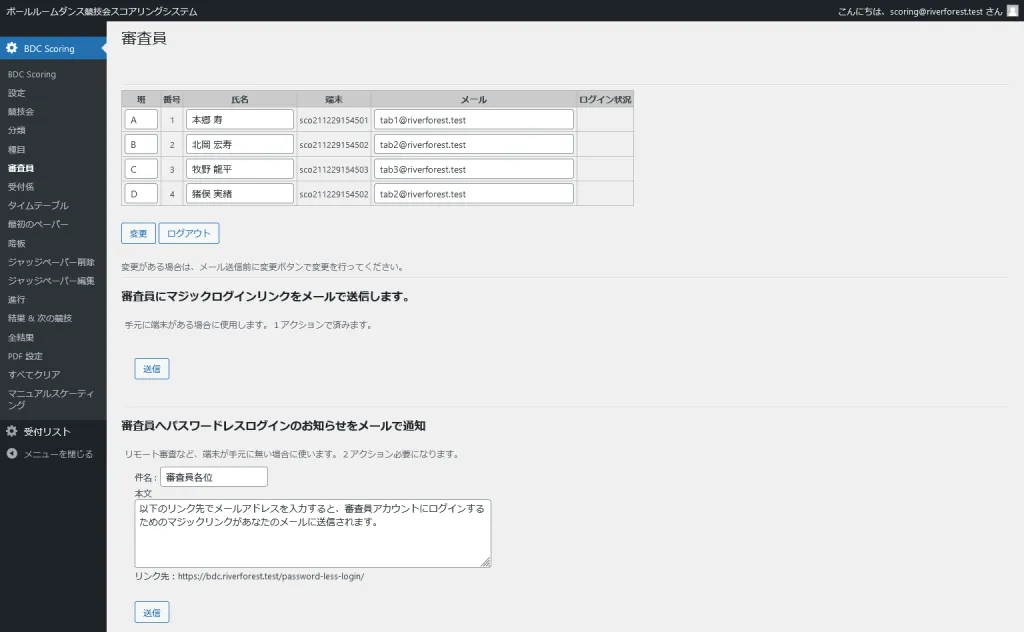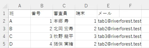 2.データ:審査員データのメールアドレスは、端末と照合するものを使用する