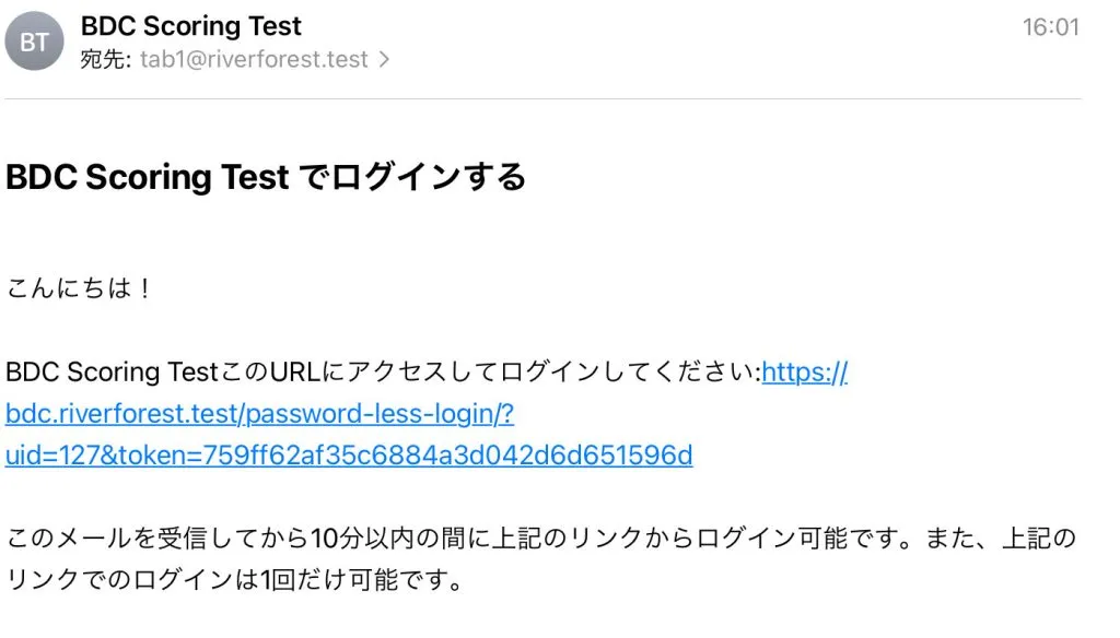 このメールを受信してから10分以内の間に上記のリンクからログイン可能です。また、上記のリンクでのログインは1回だけ可能です。