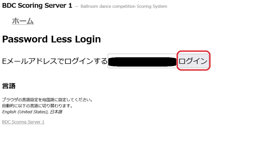 5.パスワードレスページ:審査員がパスワードレスページにアクセスし自分のメールアドレスを入力