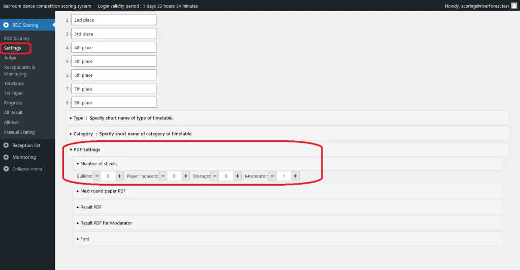 - For more efficient use of heat paper for 2 and 3, go to Settings->PDF Settings->Number of sheets and set only the Moderator to 1 sheet and 0 for the others.
